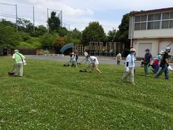 地域・学校協働事業の取組として、校庭の芝刈りを行いました。