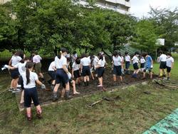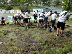 みんな泥だらけになりながら、楽しく田んぼを耕していました。