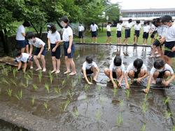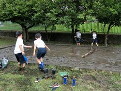 教えてもらいながら熱心に田植えをしていました(^^♪