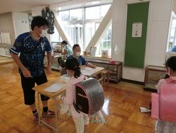 昇降口を通った後、永田台ホールの3ヶ所(低・中・高)で