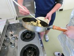 出来上がったスクランブルエッグは、みんなで黙食しました。
