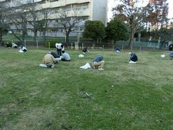 地域・学校協働事業の取組で、校庭の芝生の手入れを行いました。