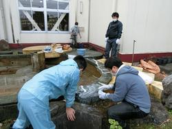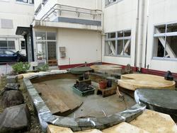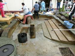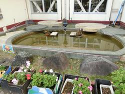 地域・学校協働事業でカニ池の清掃・補修を行いました。