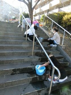 学校から南永田団地へ続く階段に、階段アートの制作をしています。