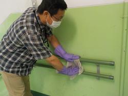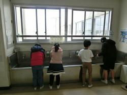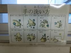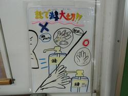 手の洗い方を全校テレビ放送で説明、洗い場へ掲示