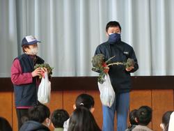 お二人に、畑で採れたブロッコリーのブーケが渡されました。