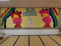 校内には、各階にお祝いの飾りが掲示されています(^^♪