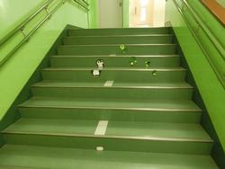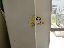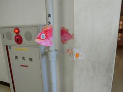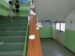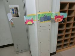 6年生が図工の学習で、校舎の中に色々な物を掲示しています。