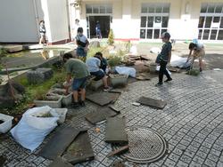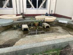 カニ池の掃除とカニ池前の花壇の整備をしてくれています。