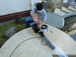 学校・地域コーディネーターの伊東さんが動くように電気工事を