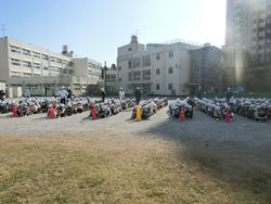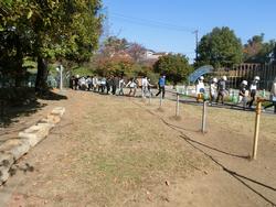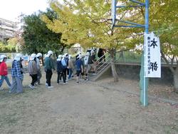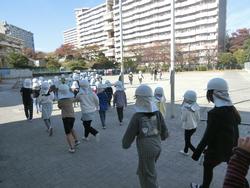 今回は、学校からの二次避難を想定して、田んぼ側の門から出て
