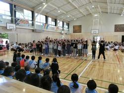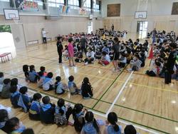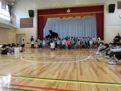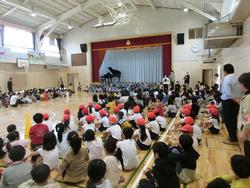 2~6年生はプレゼント、校歌斉唱を行い、1年生からは