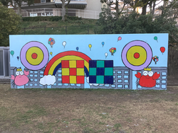 次は、12月中旬に南永田団地のミモザ前壁面に「団地アート」をします。
