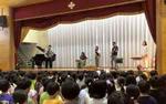 | 今朝は音楽朝会です。「カントリーロード」を演奏する「先生バンド」にびっくりしながら、みんなが体育館に集まってきました。「え~?!」「かっこいい!」 | ||