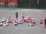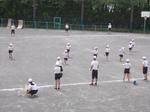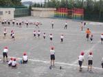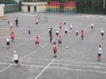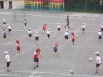 校庭で思いっきり体を動かしました。子どもたちは今日の日をとても楽しみにしていて、マリノスのコーチの話をしっかり聞いていました。