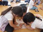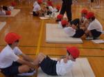 ペア学年で新体力テストを行いました。上級生に手を引かれ、計測の場に移動する下級生。協力し合いながらお互いの力を出し切れるように声かけをしていました。