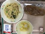 ぶどうパン 牛乳 ツナとこまつなのスパゲティ かぶのスープ煮 チーズ