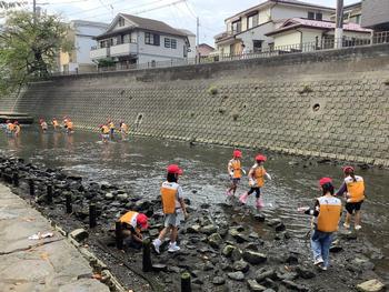 子どもたちにとって身近な環境の大岡川を探検しています。大岡川の豊かな生き物に触れ、子どもたちは心を躍らせています。