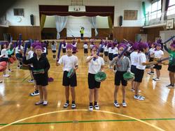 10月31日(火)の運動会に向けて4年生はこれまで表現運動、80m走、2年生との交流協議を中心に行ってきました。特に、表現運動は学年全体で息を合わせて行う大切な活動です。今年は沖縄県の民舞「エイサー」を行います。体全体を使い、高く舞ったり、左右に動いたりと、レベルアップした動きに慣れるまで時間がかかりました。自分たちで作った太鼓とばち、衣装を纏い踊る姿も見どころの一つです。