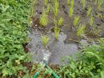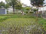 学校の畑で稲を育てています。JAの方にご指導いただきながら、しろかきと田植えを行いました。