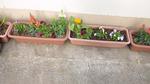 2月7日(水)環境委員会の児童とグリーン支援隊の皆さんとの協働作業により、きれいな花のプランターが昇降口前にたくさん並びました。
