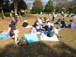 1年生が小学校で初めての遠足に出かけました。行先は金井公園、往復歩きです。とても良い天気でした。芝の上で遊んだりお弁当を食べたりしました。