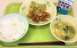 ごはん、牛乳、鶏肉のたつた揚げ、ごまじょうゆあえ、みそ汁