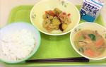 ごはん、牛乳、いろどりさつまいも炒め、呉汁