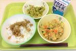 ごはん、牛乳、親子煮、磯香あえ、だいずとじゃこの炒り煮