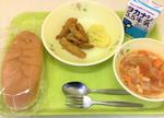 ぶどうパン、牛乳、いりこフライ、さつまいもマッシュポテト、ミネストローネ