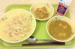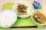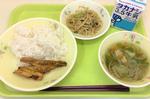 ごはん、牛乳、さばのみそ煮、磯香あえ、けんちん汁