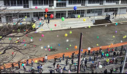 2月20日(月)に150周年Weekの開始を記念して、バルーンリリースを行いました。PTAの方々にもお手伝いいただき、空に480個の風船が上がりました。子どもたちは「一生の思い出になる」「きれい」と嬉しそうでした。