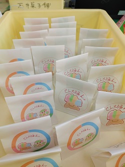 1組・2組で紙袋のデザインが違います。こだわりのこもった大福が都岡の笑顔につながりますように。