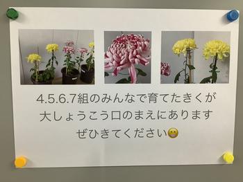 4・5・6・7組では、学校・地域コーディネーターの飛田さんのご紹介で地域にお住いの「菊名人」の方から菊の育て方をうかがい、「キクで えがおを さかせよう」プロジェクトを総合の授業で続けています。