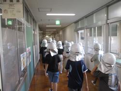 9月1日は、防災の日です。本校でも、総合防災訓練を行いました。通常の訓練よりも、より実際に近い設定で訓練を行いました。怪我人役の児童をつくったり、放送機器が使えない状況下での訓練を行ったりしました。いつもよりも時間がかかりましたが、より実際に近い訓練でした。子どもたちは、「おかしも」を守って、真剣に取り組んでいました。