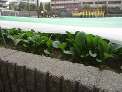 2年生の育てている小松菜。実は、給食の材料として使われるのです。12月23日の給食です。使う重さも決まっていて、3キロです。大きくなあれ!!