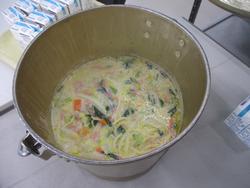 昨日2年生が収穫した小松菜が、姿をちゃんぽんに変えて、給食で出されました。準備をしている2年生に聞いてみると、「すごく楽しみ!!」と話していました。実際に食べてみると、甘みがあってとてもおいしい小松菜でした。