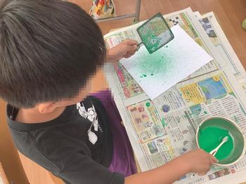 ③絵の具のついた筆をトントンしてドリピングしたり、