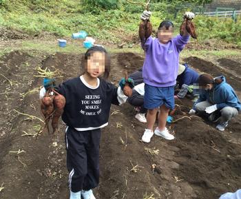 2・3時間目、生活科の時間、5月に植えた山田小学校の隣の畑に植えたサツマイモを掘りました。