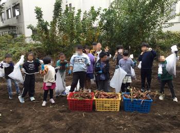 みんなで力を合わせて、サツマイモを掘りました。