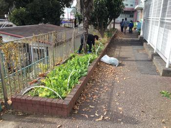 雑草が生えると野菜に水や栄養が行き渡りにくくなるので、みんなで抜きました。