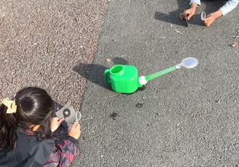 6時間目、理科の実験で虫眼鏡で、太陽の光を集めました。