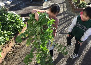山タイムの時間、大根を給食室に持っていきました。