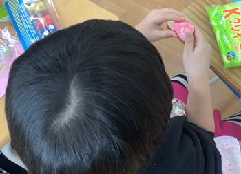 3、4 時間目、図工の時間に、粘土に色を混ぜて、イメージしたものを形にしていきました。