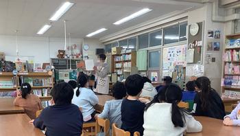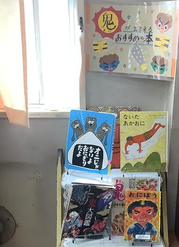 まず、学校司書の先生から、節分が近いということで鬼コーナーから鬼の本、『島ひきおに』という本を読んでいただきました。