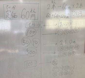 正しく計算して販売できるように、みんなで練習して確かめました。