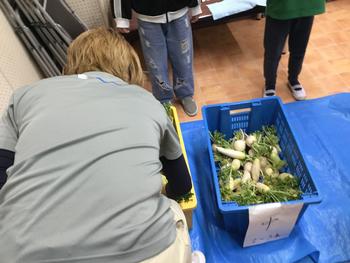 火曜日に続いて、収穫した大根を中休みに、職員室でなくスタジオで販売しました。