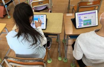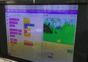 キャラクターを動かしたり、音を出したりして、背景を変えたり、いろいろと試行錯誤しながら、自分でプログラミングして、楽しく取り組んでいました。