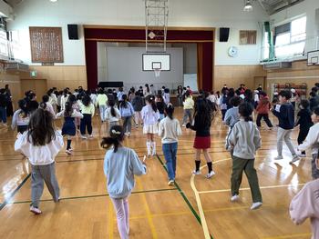 中休み、運動委員会主催の『山田ストレッチ』ダンスをしました。