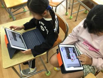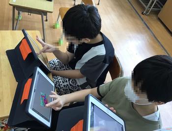 このアプリに詳しい児童に先生になってもらって、みんなに教えてもらいました。